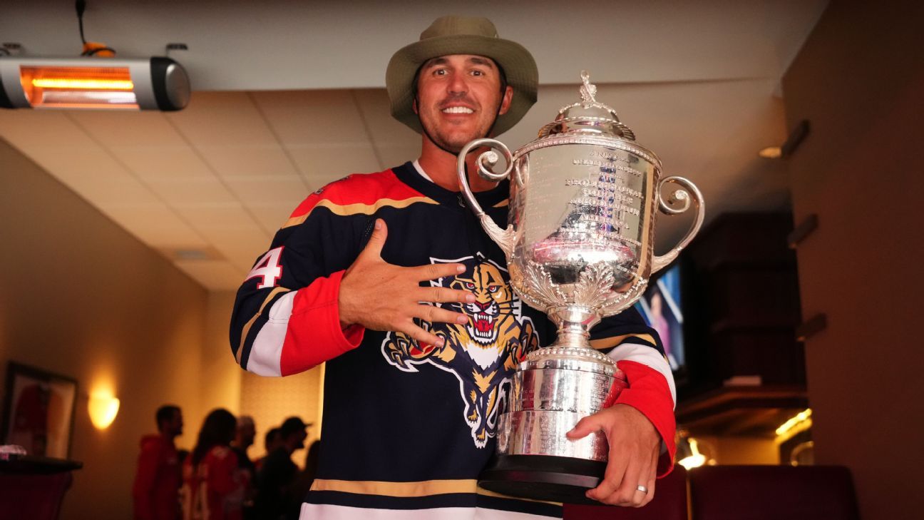 Koepka, a Florida native, received a custom jersey during the Miami Heat's game on Tuesday, and he brought his new hardware to the Florida Panthers' Game 3 win on Monday.
