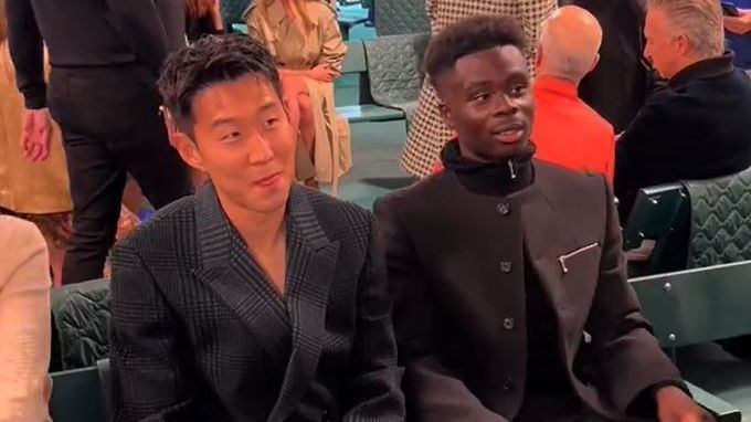 Tottenham's Son Heung-Min and Arsenal's Bukayo Saka sat together at London Fashion Week.