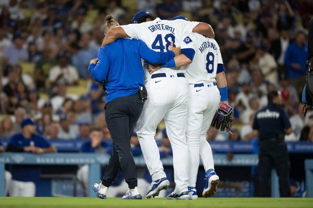 Dodgers reliever Brusdar Graterol, who missed most of the year with a shoulder injury, is believed to have suffered a Grade 3 hamstring strain in his season debut Tuesday night.