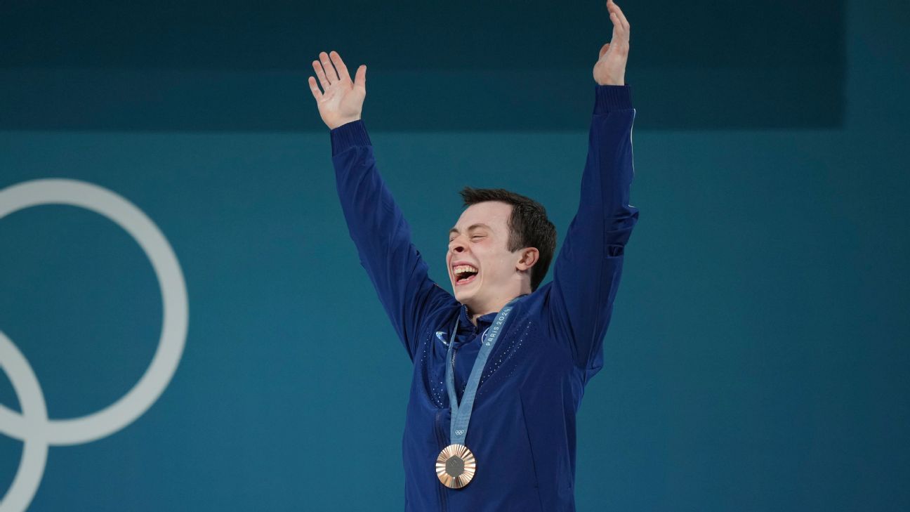 Hampton Morris, who trains in his garage in Georgia, on Wednesday became the first U.S. men's weightlifter to medal at the Olympic Games in four decades.