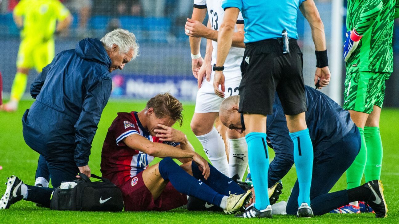 Martin Ødegaard be out for several weeks after injuring his ankle during Norway's victory against Austria, according to the national team's doctor.